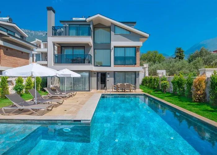 Vila Villa The Bay je umístěna 6 km od Muzeum Fethiye, je 4-ložnicové ubytování s terasou. Vila nabízí krytý plavecký bazén.